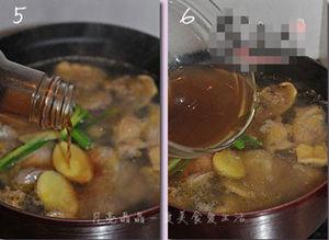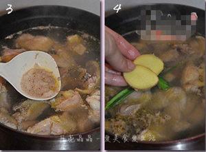 鸡切块,放入锅中,倒入足量冷水,煮开,撇去浮末。放入姜片和葱段。