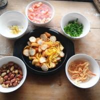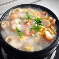 虾仁洗净,姜切丝,把鸡蛋摊成鸡蛋皮切丝(第一次摊鸡蛋皮,略失败)。然后把泡好的大米加入适量的水(适量的意思是你喜欢喝稀点的多加点水,喜欢喝稠的就多加点水,大概1比5到1比7左右吧)然后开始煮粥。粥煮沸后转小火加入虾仁、鱿鱼丝、姜丝,继续煮,煮的越口感越好。