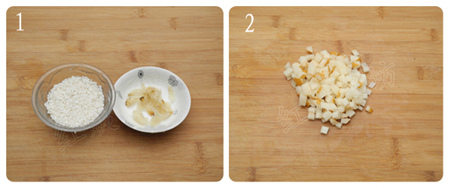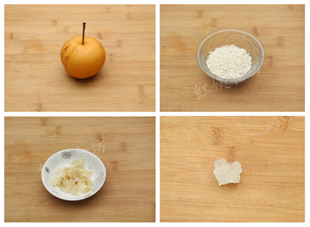 原料:糯米50克,雪梨1个,干百合1小把,冰糖1块