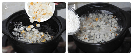 5. 用勺子搅拌一下,防止糯米粘锅;煮开后,用小火煮15分钟。
