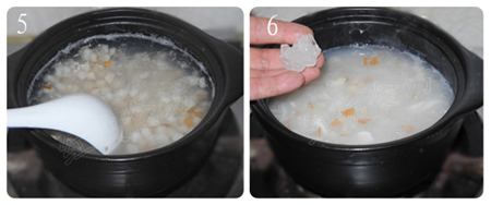 6. 把冰糖放进去,再煮5分钟即可(如不喜欢太甜的味道或者家里有糖尿病人的,可以不放冰糖的,雪梨也有淡淡的甜味)。